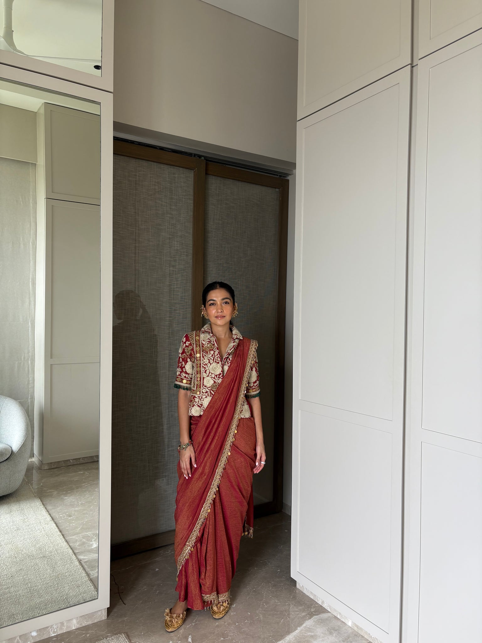 Blazer saree for a fun indo western event.