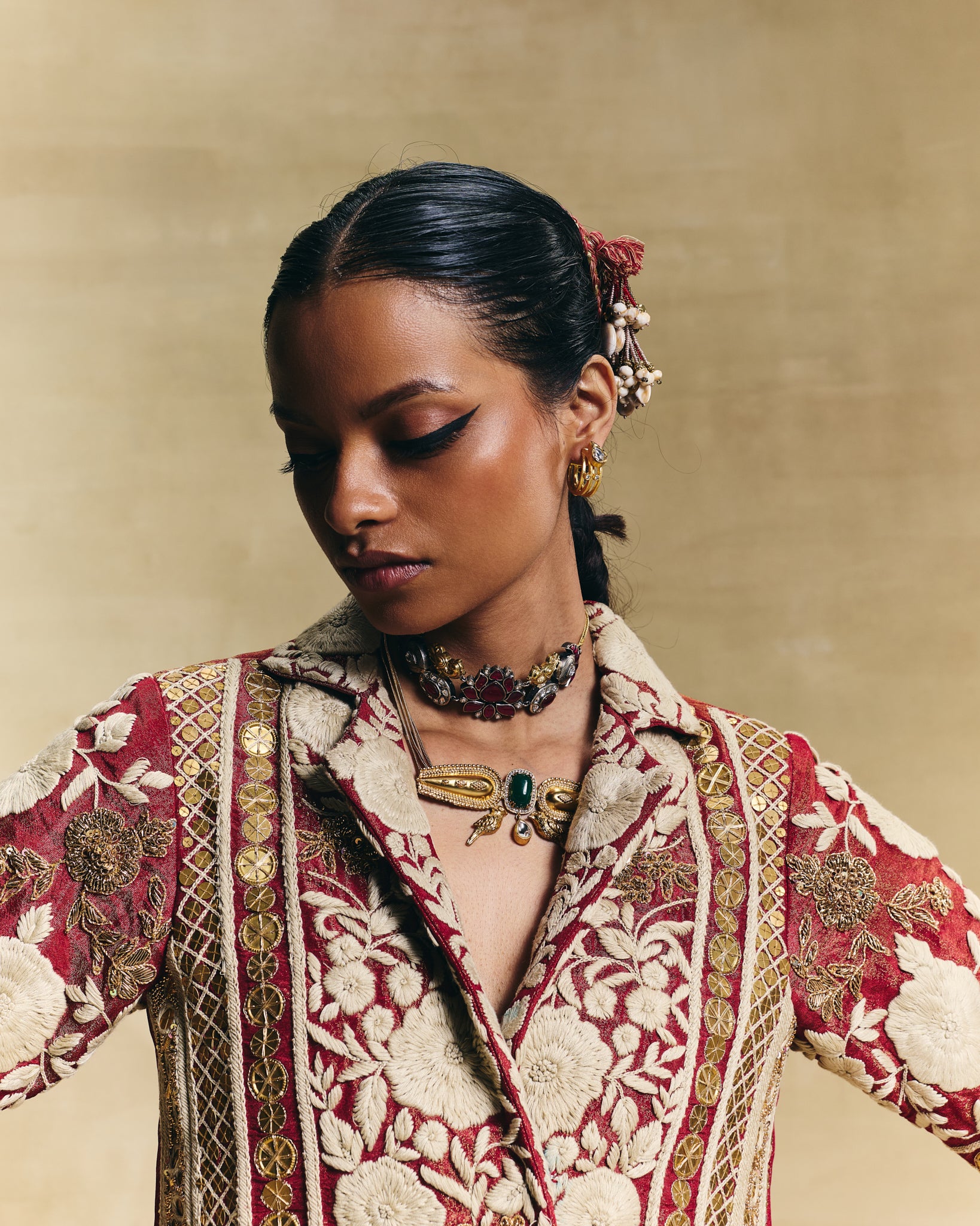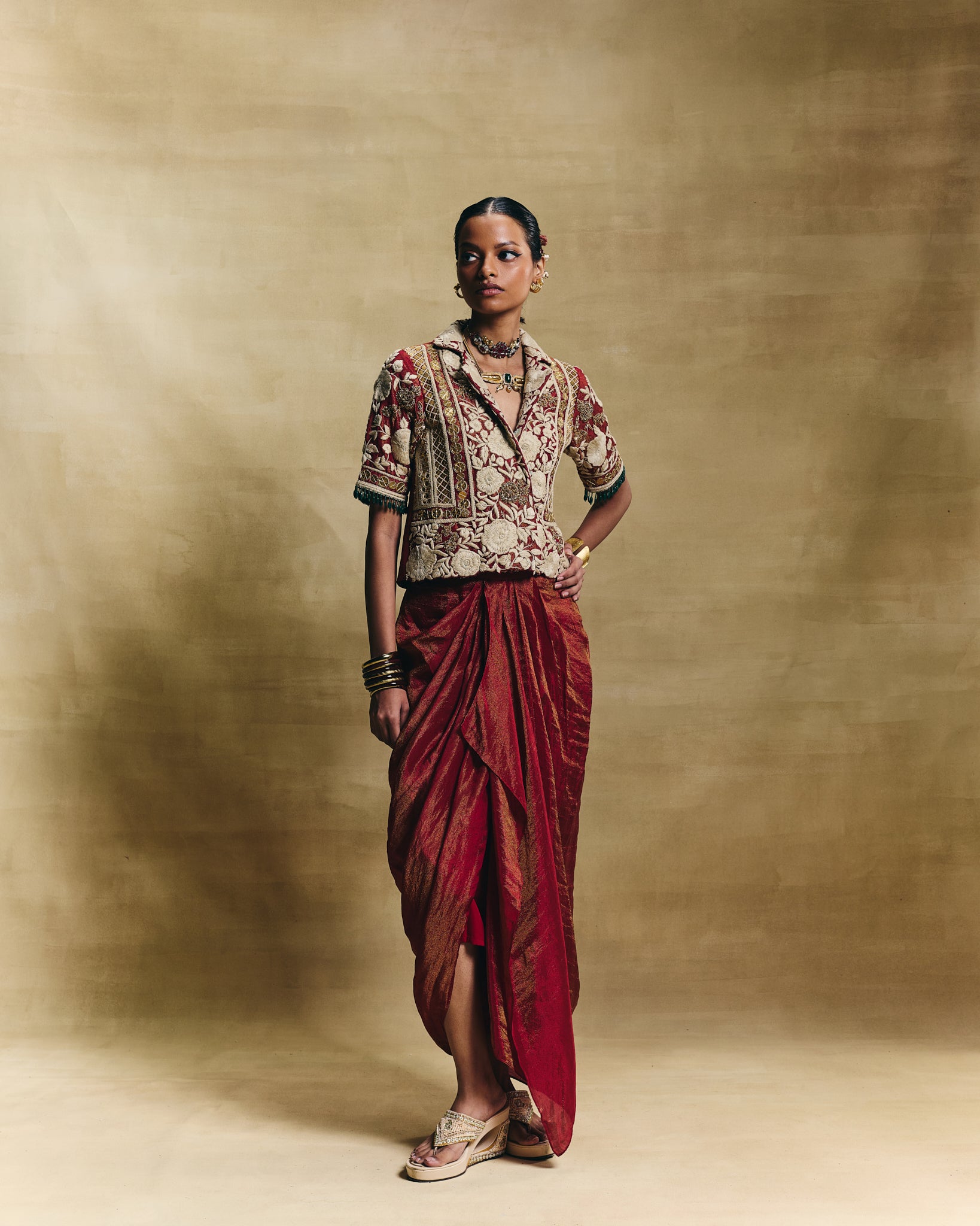 Pair it with gold temple jewellery or contrast it with traditional emeralds.