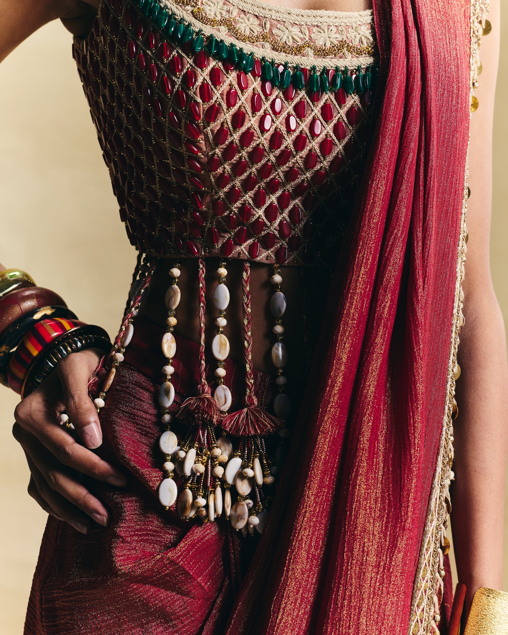 Embellished with stone work and statement tassels makes it a head turner!