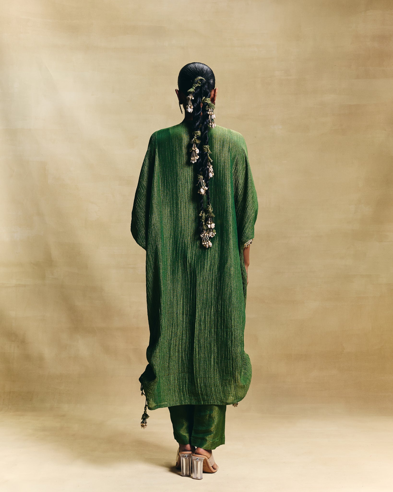 The traditional green hue, the easy breezy silhouette and the statement hand embroidered yoke makes for a perfect ethnic number.